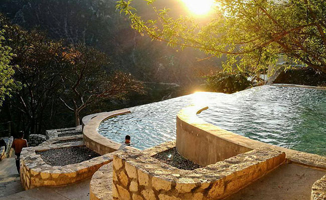 Sumérjase en la mágica emoción del contacto directo con la naturaleza en un verdadero oasis, encontrando armonía, descanso y diversión. Atrévase a explorar las caprichosas formaciones geológicas, disfrutando de las aguas termales que emanan de las montañas o experimente la sensación de encontrarse en un verdadero paraíso terrenal en medio de una zona semidesértica. Es ideal para disfrutar en un fin de semana de este entorno natural que le ofrece la aventura de acampar y nadar cerca de la cascada o en las pozas del paraíso escondido, donde existe una gran variedad de estas, claro esta, sin dejar de explorar la gruta y túnel, corazón de Tolantongo.